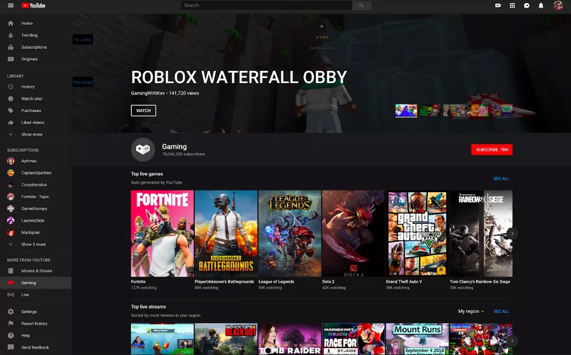แอพ Youtube Gaming เรียกได้ว่าเป็นแอพที่ทาง Youtube ได้เปิดตัวแยกออกมาเมื่อปี 2015 เพื่อส่งเสริมปรับปรุงระบบการสตรีมสด และป้องกันเนื้อหาที่ไม่เกี่ยวข้องออกจากแฟนเกม โดยระบบจะคล้ายกับของเดิม แต่คัดกรองวิดิโอข่าวสารให้เกี่ยวกับเฉพาะเรื่องเกมต่างๆเท่านั้น