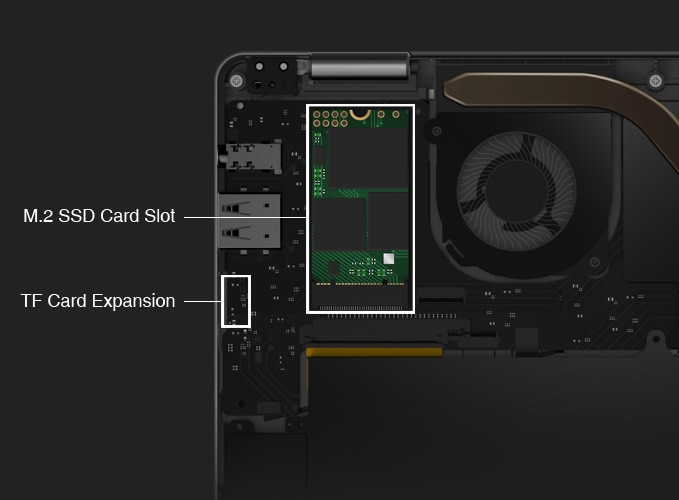 แรมให้มาขนาด 8 GB พร้อมพื้นที่เก็บข้อมูลแบบ eMMC 128 GB พร้อมสล็อต M.2 PCIe ให้อัพเกรด SSD เพิ่มภายในได้อีกด้วย