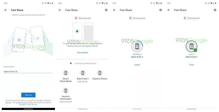 ล่าสุด Google กำลังทดสอบวิธีการส่งไฟล์ระหว่างเครื่องที่มีชื่อว่า “Fast Share” ซึ่ง concept การทำงานก็คล้ายกับ AirDrop ของ iOS และ Mac (หรือ Files Go ของแอปฝั่ง Google)