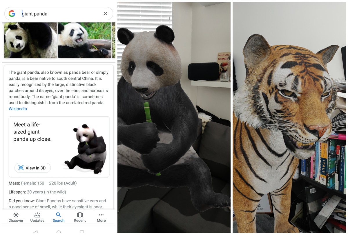 ซึ่งตอนนี้น่าจะเริ่มทำการทยอยอัพเดตให้กับผู้ใช้งานทุกคน ได้สามารถเล่นฟีเจอร์นี้กันได้จากมือถือเลย เมือเสิร์ชชื่อสัตว์ตัวไหนก็ตามที่มีการทำภาพกราฟิกในระบบเอาไว้ ก็จะมีการ์ดหรือปุ่มขึ้นมาให้กดได้ แล้วก็จะทำการเปิดกล้องขึ้นมาให้เราได้วางตำแหน่งของสัตว์ตัวนั้นลงบนจุดที่ต้องการ