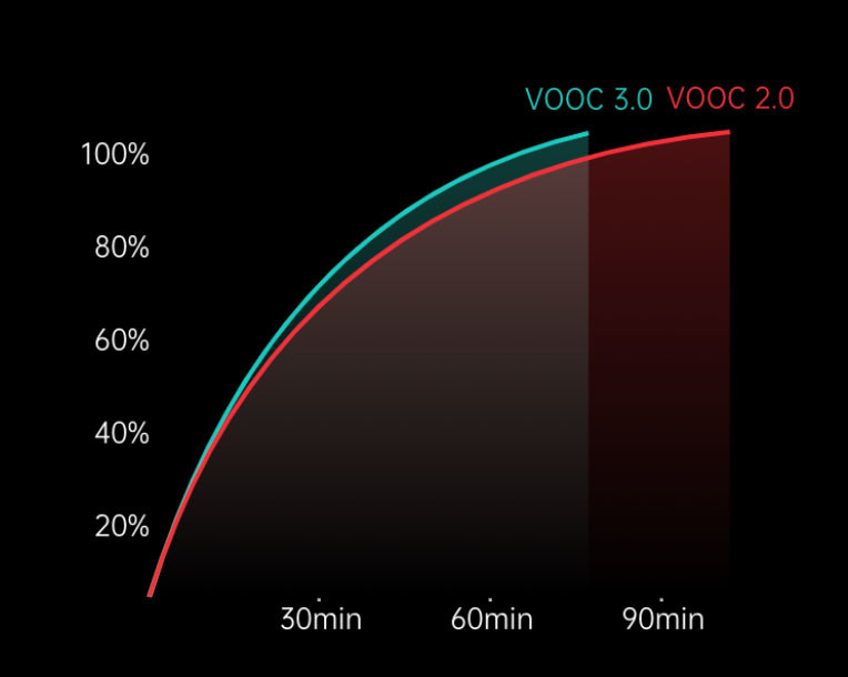 พร้อมรองรับการใช้งานได้เต็มวันแบบหายห่วง ด้วยแบตเตอรี่ความจุขนาดใหญ่ และมี VOOC 3.0 จะช่วยเพิ่มความเร็วในการชาร์จ ชาร์จไปเล่นไป ไม่มีปัญหา ซึ่งอัลกอริทึ่มนี้จะช่วยควบคุมความร้อนของเครื่องและในขณะเดียวกันก็สามารถเล่นได้อย่างเต็มประสิทธิภาพ