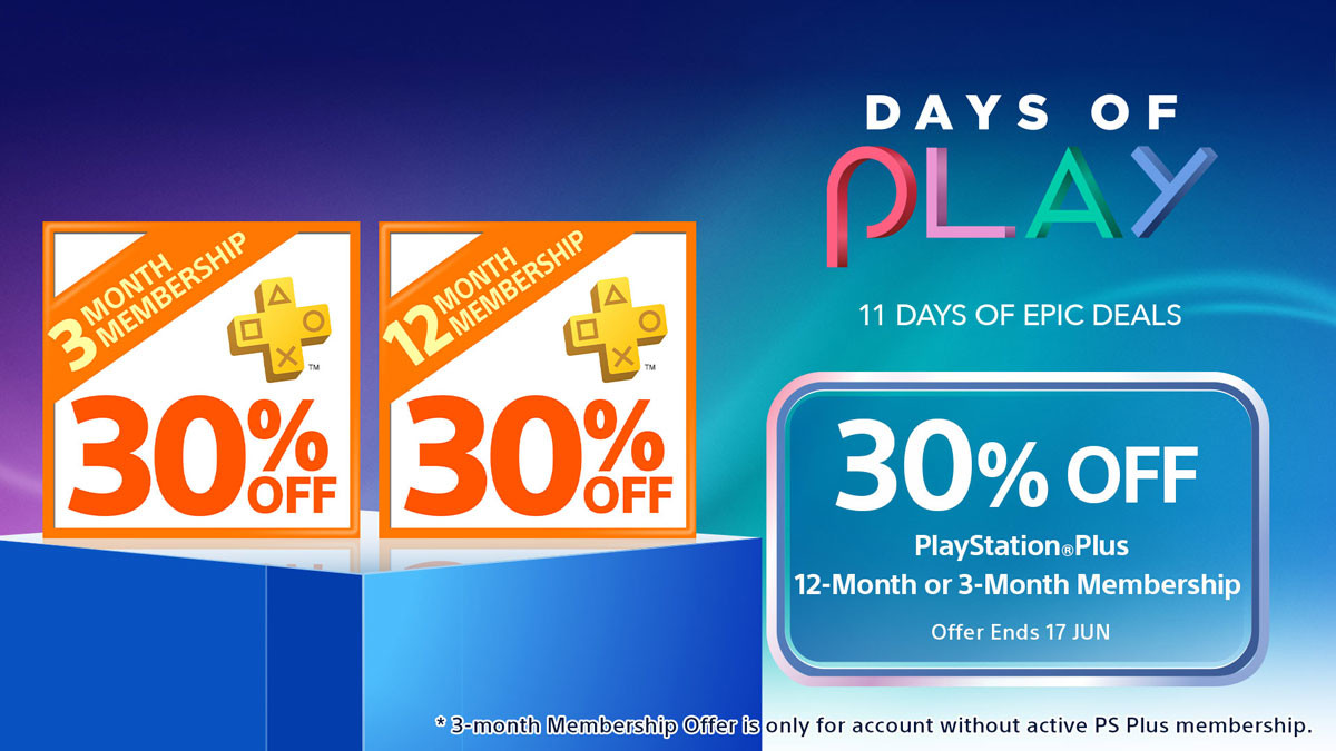 โปรโมชั่น PlayStation Network DAYS OF PLAY 7 – 17 มิ.ย. ลดสูงสุดถึง 90% สำหรับเกมที่คัดสรรมาให้และส่วนลด 30% สำหรับการสมัครระยะเวลาสมาชิก PlayStation Plus