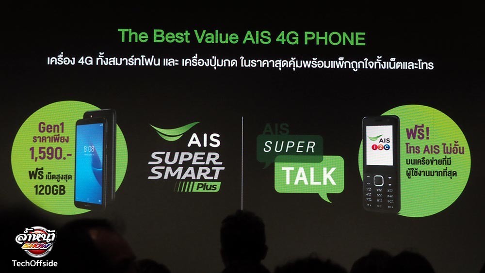 - สมาร์ทโฟนสุดคุ้มพร้อมแพ็กเกจถูกใจทั้งโทรและเล่นเน็ต ได้แก่ สมาร์ทโฟน AIS Super Smart Gen 1 ราคาเพียง 1,590 บาท ให้เล่นเน็ตสูงสุด 120 GB มูลค่า 1,400 บาท เมื่อใช้ซิมใหม่ที่มาพร้อมเครื่อง, ฟีเจอร์โฟน AIS Super Talk I ราคาเพียง 890 บาท โทร AIS ไม่อั้น ฟรี!