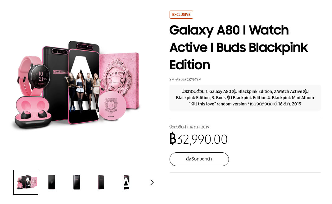 อีกหนึ่งไอเท็มที่ชาว BLINK ต้องไม่พลาด Samsung Galaxy A80 Blackpink Edition สีพิเศษ พร้อม Watch และ Buds จำนวนจำกัดแค่ 900 ชุดในไทย ราคา 32,990 บาท