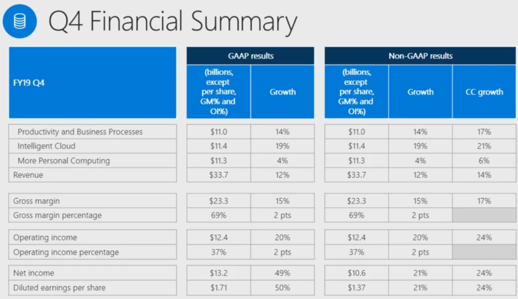 Microsoft รายงานผลประกอบการของไตรมาสที่ 4 ปี 2019 (รอบระยะเวลาตามปีงบการเงินของบริษัท ไตรมาสที่ 4 นับตั้งแต่เดือน เมษายน ถึง มิถุนายน 2019) ออกมาแล้ว จะเป็นยังไงบ้าง ไปดูกัน