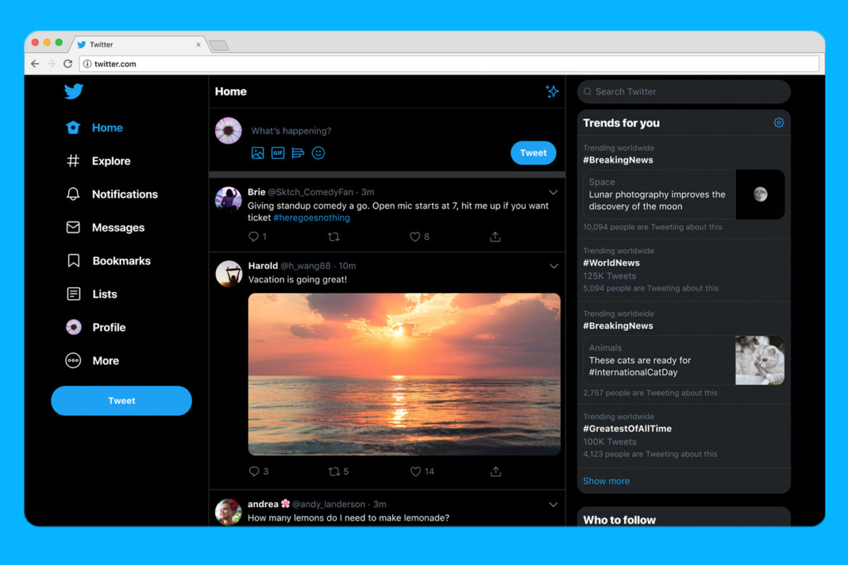 จะเปลี่ยนแปลงที่เห็นได้ชัดเจนที่สุดคือแถบเครื่องมือด้านบน Navigation Bar ได้ถูกย้ายลงมาอยู่ที่ด้านข้างซ้ายเป็น Sidebar แทน ซึ่งก็มีตัวเลือกทั้ง Bookmarks, Lists, หน้า Profile ของเรา และหน้าใหม่ Explore