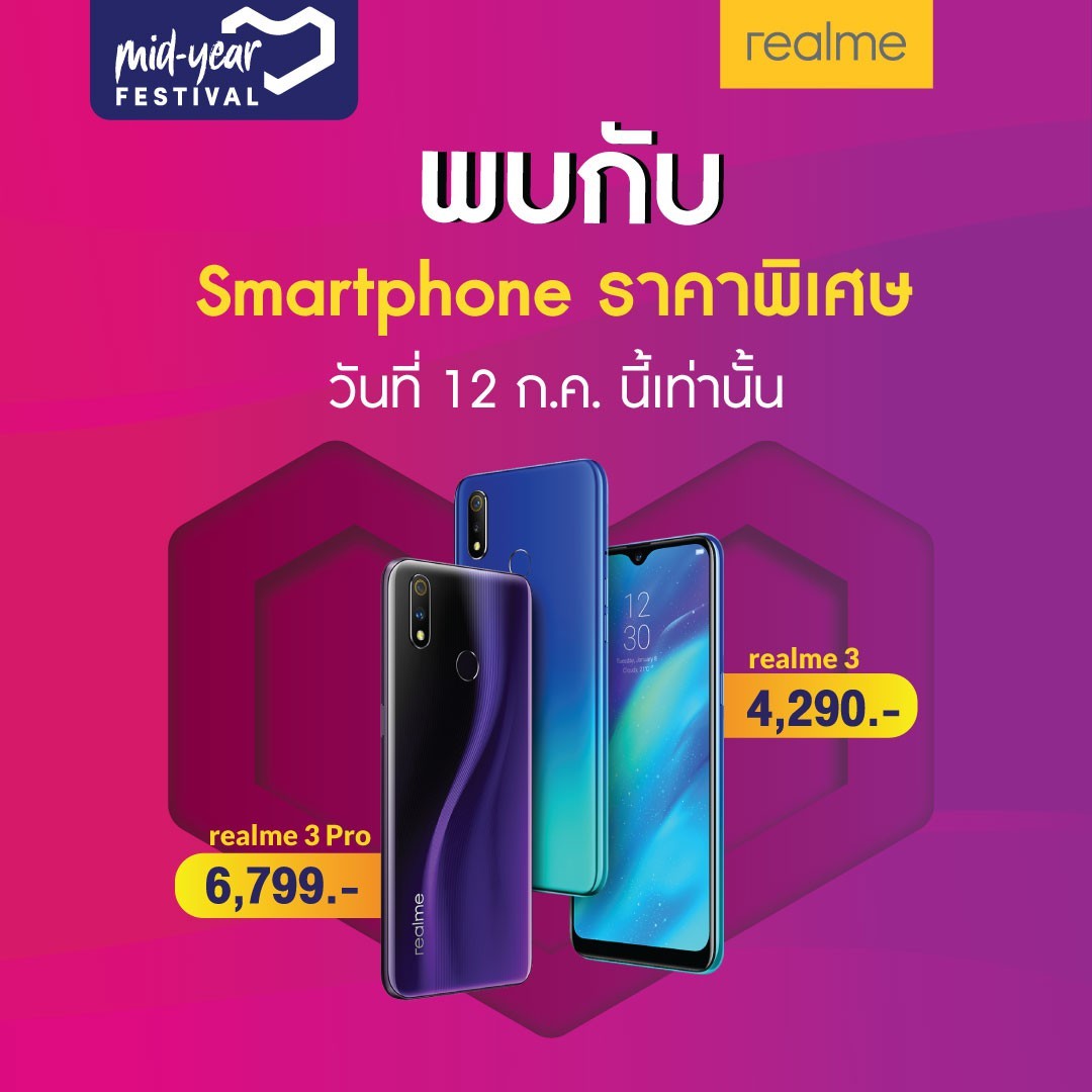 โดยสามารถซื้อเครื่อง realme ได้ในราคาพิเศษตลอดทั้งวัน ไม่ว่าจะเป็น realme 3 ที่ลดราคาเหลือเพียงแค่ 4290 บาท (จากปกติ 4590 บาท) หรือ realme 3 Pro ที่ลดราคาเหลือเพียง 6799 บาท (จากปกติราคา 6999 บาท)