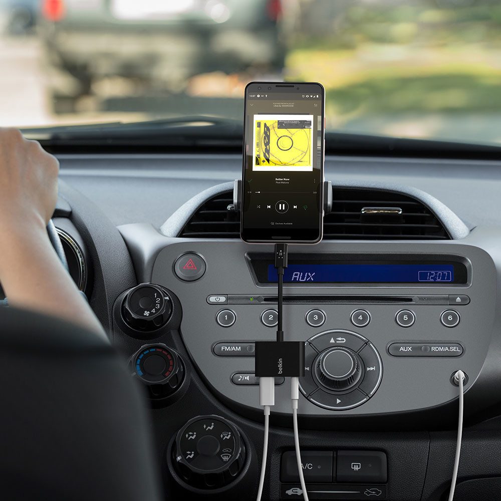 Belkin RockStar 3.5mm Audio + USB-C Charge Adapter สำหรับสมาร์ทโฟน แท็บเล็ต USB-C ให้การชาร์จ พร้อมฟังเพลงหรือรับสายได้พร้อมกัน