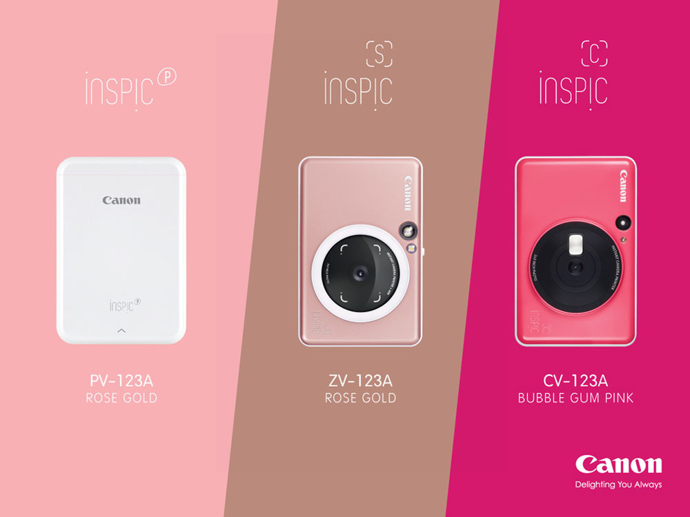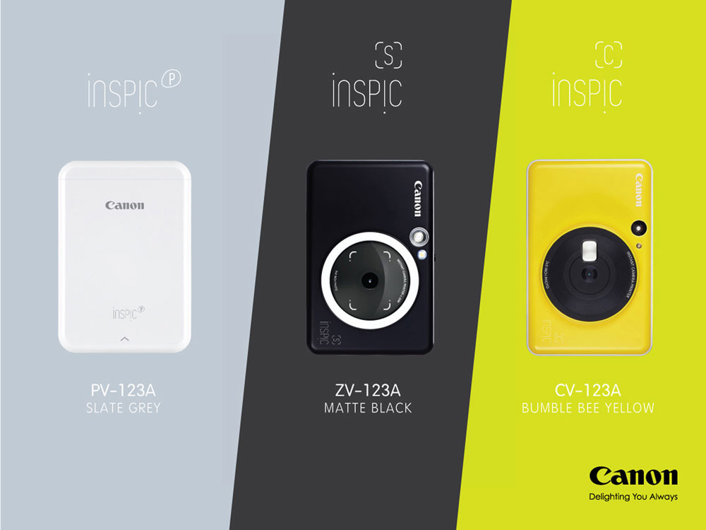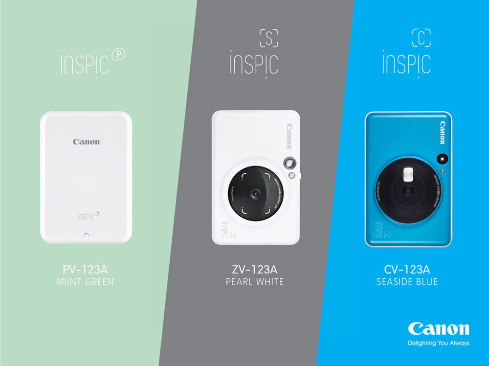 อีกหนึ่งซีรีส์ตอบโจทย์มาเอาใจคนที่ชอบสีสันจี๊ดจ๊าดด้วย Canon iNSPiC [C] ที่มาพร้อมกับเฉดสีสไตล์ป๊อปคัลเลอร์ให้เลือกถึง 3 แบบ ได้แก่ ชมพูบับเบิ้ลกัม (Bubble Gum Pink) เหลืองบัมเบิ้ลบี (Bumble Bee Yellow) และน้ำเงินซีไซด์ (Seaside Blue) มีกล้องถ่ายรูปในตัวความละเอียด 5 ล้านพิกเซล และกระจกข้างเลนส์ช่วยให้ถ่ายเซลฟี่ได้มุมสวยเป๊ะ ไม่หลุดเฟรม สั่งพิมพ์ภาพได้ง่ายเพียงแค่แตะปุ่มสัมผัสเพียงครั้งเดียว