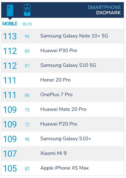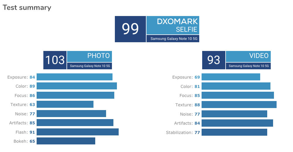 ด้วยคะแนนนี้ทำให้ Samsung Galaxy Note10+ เป็นสมาร์ทโฟนที่ได้รับคะแนนรีวิวกล้องจาก DxOMark ได้เป็นอันดับ 1 ของตาราง ทั้งกล้องหลัง และกล้องหน้าเซลฟี่ ถือว่าเป็นความสำเร็จในการพัฒนาด้านการถ่ายภาพของซัมซุงไปอีกขึ้น