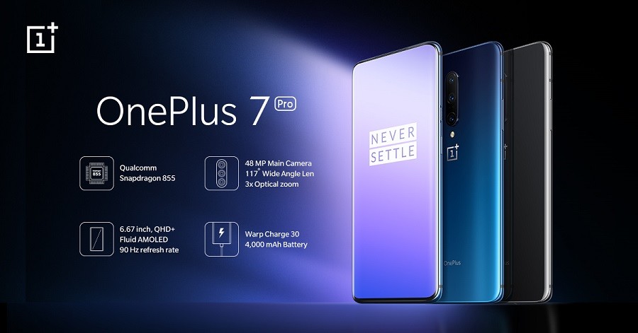 OnePlus 7 Pro สมาร์ทโฟนสุดพรีเมี่ยมที่มาพร้อมกับหน้าจอ Fluid AMOLED ขนาดหน้าจอใหญ่ 6.67 นิ้ว ความคมชัดระดับ HDR10+ และรีเฟรชเรทสูงถึง 90Hz เต็มเปี่ยมกับประสิทธิภาพกับการเล่นเกมบนสมาร์ทโฟนของคุณได้อย่างดีเยี่ยม โดยใช้ชิปเซ็ทประมวลผล Qualcomm Snapdragon 855 กับหน่วยความจำภายใน USF 3.0 ที่เร็วแรงและลื่นไหลกว่าสมาร์ทโฟนทุกรุ่นที่เคยมีมา พร้อมระบบชาร์จเร็วอย่าง warp charge 30 และยังพร้อมประสิทธิภาพของกล้องหลังถึง 3 ตัว แบบ Triple camera ที่ความละเอียดชัดถึง 48 ล้านพิกเซล ที่จะช่วยเก็บภาพถ่ายทุกช่วงเวลาของคุณได้เป็นอย่างดี