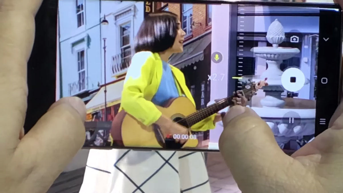 การถ่ายวิดีโอก็มีลูกเล่นใหม่เพิ่มขึ้นมา คือเวลาที่เราซูมภาพระหว่างถ่ายวิดีโอ ระบบไมค์ของ Galaxy Note10 ก็จะซูมไปขยายเสียงตามจุดที่เราโฟกัส ให้มีเสียงที่ดังมากขึ้นด้วย