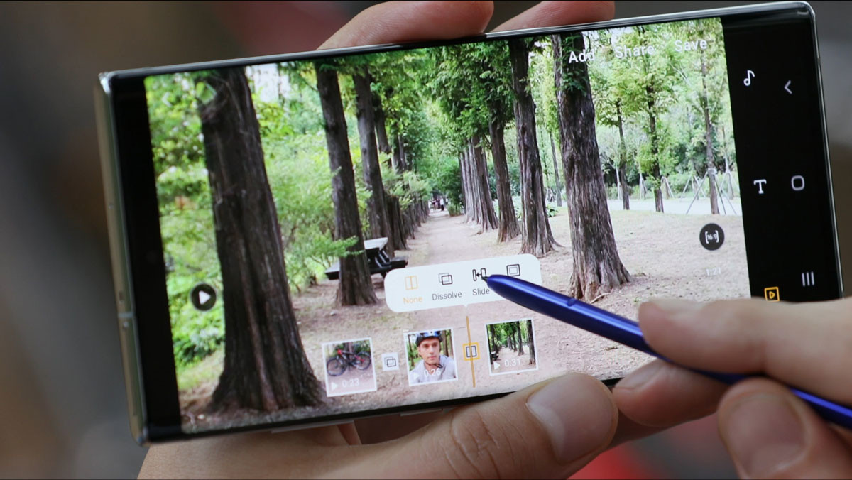 แหม อันนี้ถูกใจเป็นการส่วนตัวครับ เพราะผมไม่ค่อยได้เจอสมาร์ทโฟนที่ใส่เอาตัวระบบตัดต่อวิดีโอระดับสูงมาให้ในตัวเครื่องเลย ส่วนใหญ่คือต้องไปดาวน์โหลดมาติดตั้งเพิ่ม และตัวตัดต่อวิดีโอที่มาใน Galaxy Note10 ยังรองรับการทำงานร่วมกับปากกา S Pen ทำให้การตัดต่อ เลือกเฟรม ปรับแต่ง หรือการตัดต่อที่ซับซ้อนทำได้สะดวกยิ่งขึ้น รวมถึงยังทำงานร่วมกับแอพ Adobe Rush ได้อีกด้วย