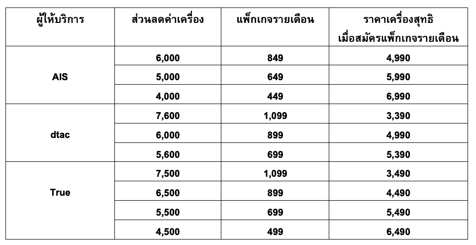 ส่วนลูกค้าที่ Pre-order ผ่านผู้ให้บริการเครือข่าย AIS, dtac และ True จะได้รับสิทธิส่วนลดสูงสุด 7,600 บาท เหลือค่าเครื่องเริ่มต้นเพียงแค่ 3,390 บาทเท่านั้น