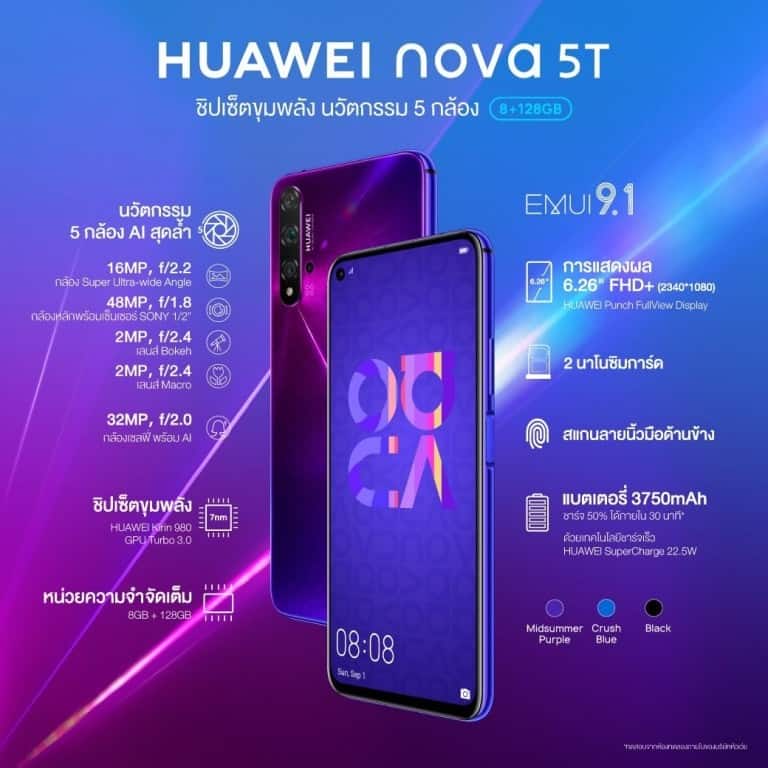 ซีรี่ย์ nova ของหัวเว่ยปีนี้ยังคงร้อนแรงเช่นเคย เปิดตัวเรียบร้อยกับ Huawei nova 5T สเปค นี่สูสีระดับเรือธง พร้อมกล้อง AI ลูกเล่นแพรวพราว แถมราคาจัดมาเร้าใจแค่ 10,990 บาทเท่านั้น