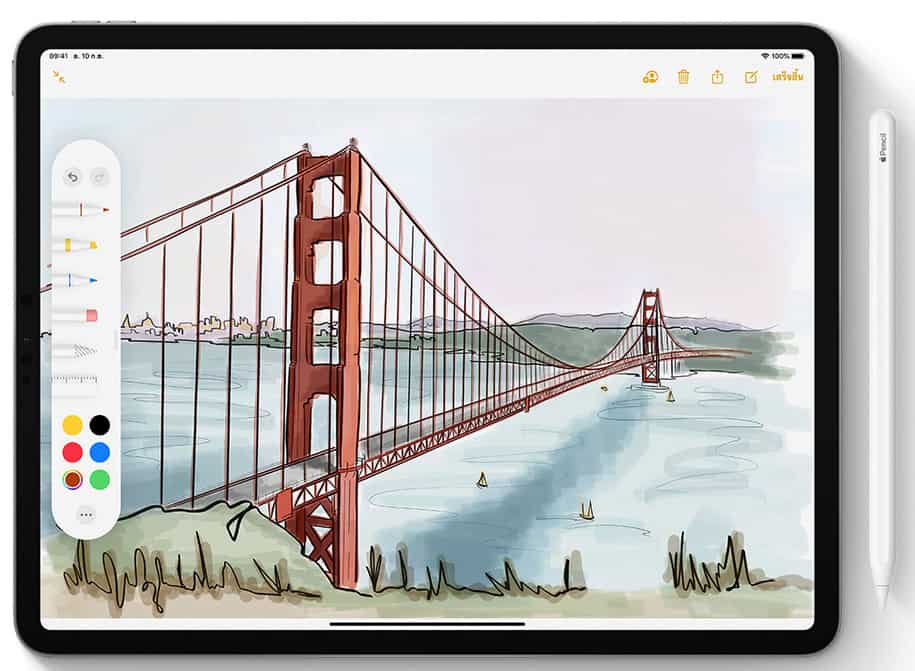 รองรับการใช้งานกับ Apple Pencil ไม่ว่าจะใช้ จดบันทึก วาดรูป หรือ ทำเครื่องหมายต่างๆลงในเอกสาร ฯลฯ
