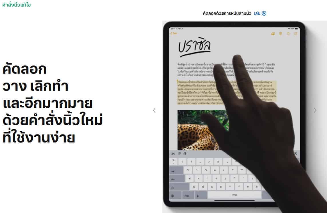 iPadOS รองรับคำสั่งนิ้ว เพื่อให้การทำงานต่างๆ ง่ายยิ่งขึ้น เช่น