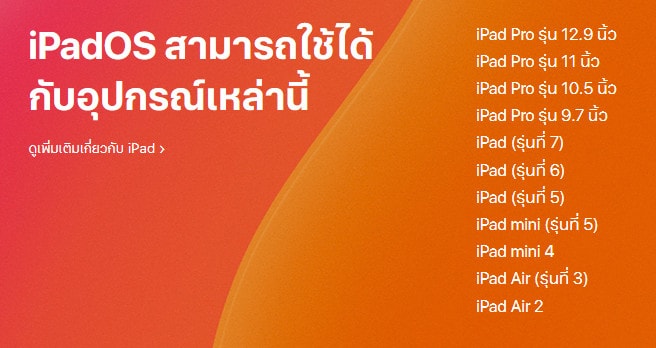 สามารถเข้าไปดูรายละเอียดของ iPadOS แบบเต็มๆ ได้จาก iPadOS | คุณสมบัติ iPadOS