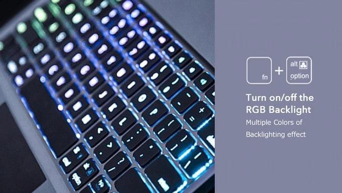 ความพิเศษอย่างนึงคือมีการใส่ Trackpad ติดตั้งมาให้ด้วย และยังระบุว่าเป็นแบบคุณภาพสูง มีความแม่นยำ สำหรับเพิ่มความสะดวกในการใช้งานมากขึ้น มีไฟส่องสว่าง Backlighting ให้ทุกปุ่ม เชื่อมต่อแบบไร้สายผ่าน Bluetooth