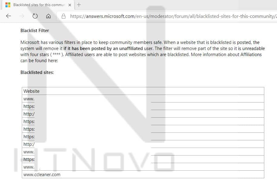 ซึ่งจากข้อมูลข้างบน ตีความได้ว่า หากมีการโพสต์ หรือ แปะลิงก์ ที่จะนำผู้ใช้งานไปยังเว็บไซต์ของ CCleaner มันจะไม่สามารถปรากฏบนฟอรั่มของ Microsoft และถูกลบออกทันที