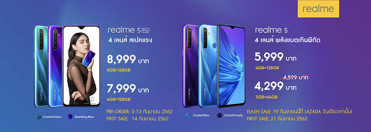 เปิดตัวพร้อมจองล่วงหน้า รับสิทธิพิเศษ กับ realme 5 สมาร์ทโฟนกล้องหลัง 4 ตัว แบตอึด ราคา 4599 บาท และ realme 5 Pro ราคา 7999 บาท