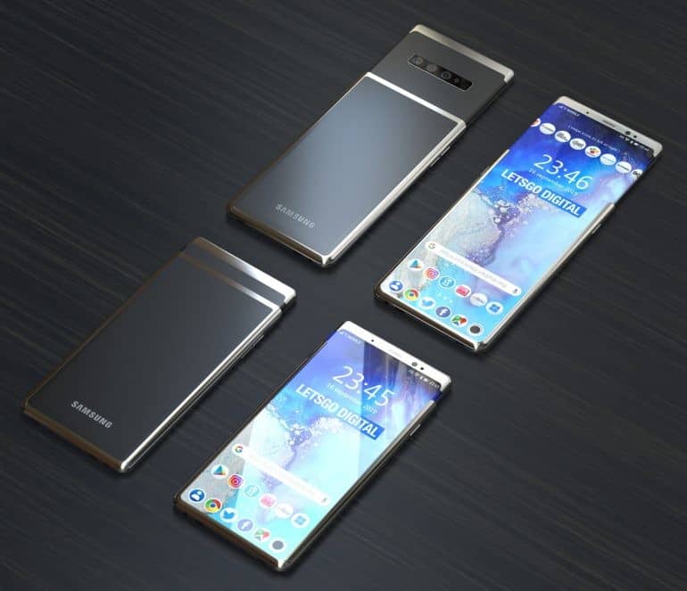 รูปเรนเดอร์จากสิทธิบัตรใหม่ของ Samsung ที่คาดว่าจะเป็นสมาร์ทโฟนตัวท็อปรุ่นต่อไป Samsung Galaxy S11 และ S11 Plus ที่คาดว่าจะมาพร้อมกับดีไซน์แบบสไลด์ โดยที่หน้าจอจะเป็นแบบโค้งม้วนซ่อนเอาไว้ด้านล่าง ในพื้นที่ขนาดประมาณ 25 เปอร์เซ็นต์ของหน้าจอ และที่ด้านข้างก็ยังมีการใช้ดีไซน์หน้าจอแบบ ‘Waterfall’ ของโค้งมากกว่าปกติด้วย