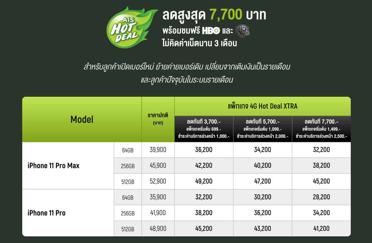สำหรับอีก 2 รุ่น iPhone 11 Pro และ iPhone 11 Pro Max ของทาง เอไอเอส ก็มีส่วนลดกับโปรโมชั่นเช่นกัน