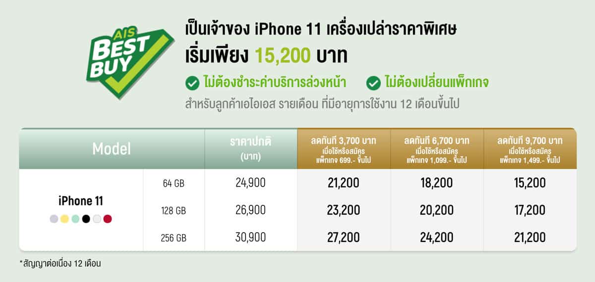 AIS ราคา iPhone 11 เริ่มต้นแค่ 15,200 บาท