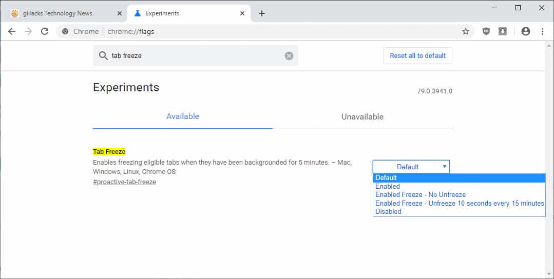 ถ้าอยากทดสอบ ลองเข้าไปที่ chrome://flags/#proactive-tab-freeze จากนั้น เลือกตัวเลือกจาก drop-down menu ได้แก่