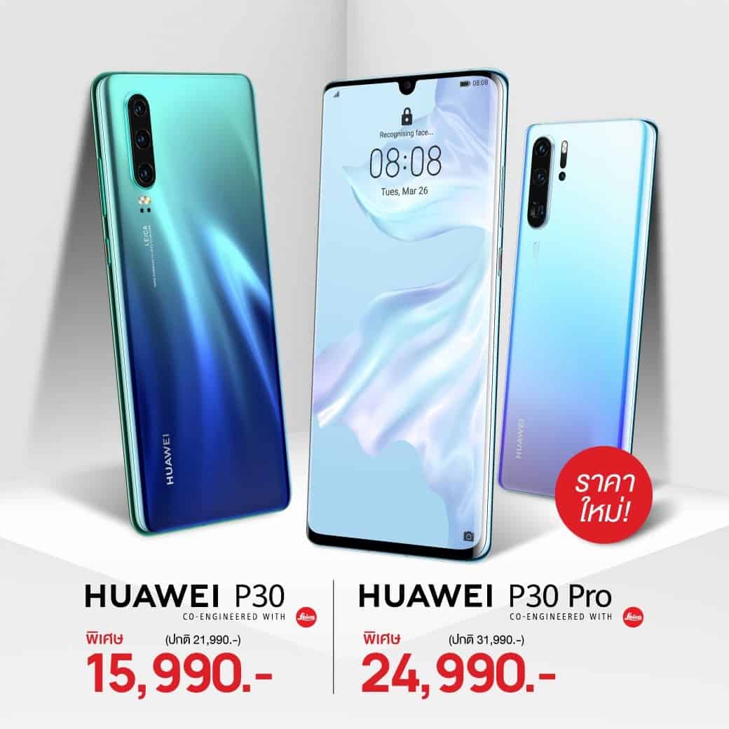 หัวเว่ย (ประเทศไทย) ประกาศปรับราคาสมาร์ทโฟน Huawei P30 และ P30 Pro ใหม่ โดยลดราคาจากตอนเปิดตัว 7,000 บาท มีผลตั้งแต่ 12 ตุลาคมนี้