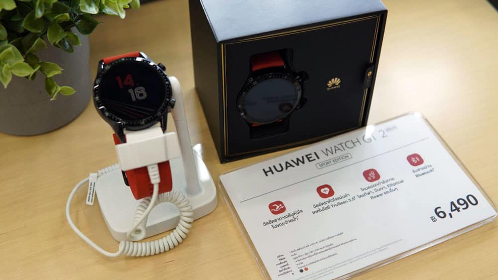 หัวเว่ยจะวางจำหน่าย HUAWEI Watch GT2 ขนาดหน้าจอ 46 มิลลิเมตร จำนวน 2 รุ่น คือ รุ่น Classic ราคา 6,990 บาท และ รุ่น Sport ราคา 6,490 บาท พร้อม HUAWEI Band 4 ราคา 999 บาท ในวันที่ 18 ตุลาคมเป็นต้นไป ณ หัวเว่ย แบรนด์ ช้อป และร้านตัวแทนจำหน่ายที่ร่วมรายการทั่วประเทศ สำหรับรุ่นอื่นๆ จะทยอยวางจำหน่ายเร็วๆ นี้