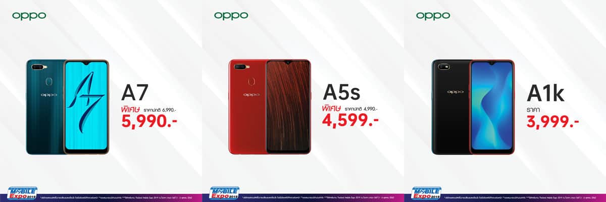 นอกจากนี้ก็สามารถจับจอง OPPO A1k ราคา 3,999 บาท OPPO A7 ในราคาพิเศษ 5,990 บาท จากปกติ 6,990 บาท! และ A5s จากราคาปกติ 4,990 เหลือเพียง 4,599 บาทเท่านั้น