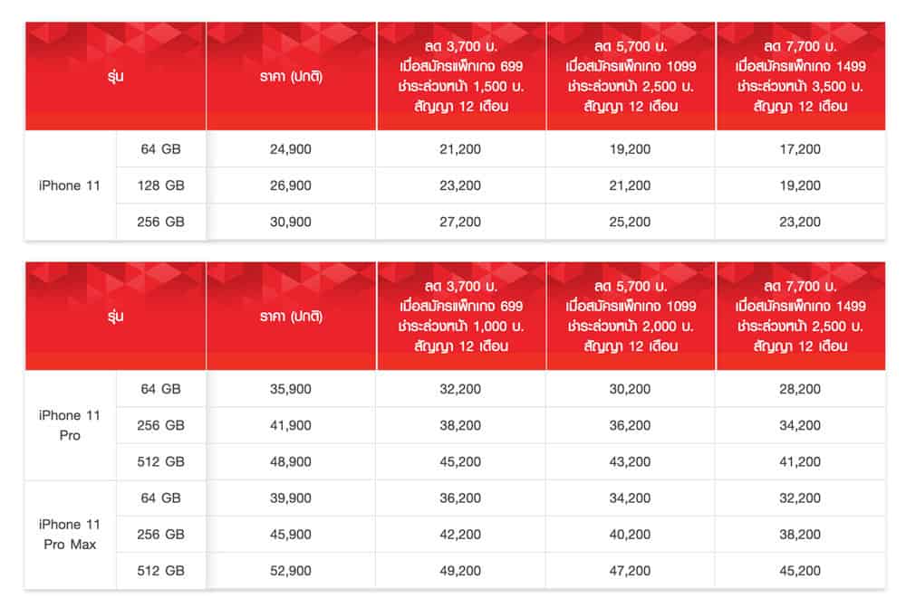 ข้อเสนอสุดพิเศษ สำหรับสั่งซื้อล่วงหน้า ลดสูงสุด 9,700 บาท เมื่อซื้อเครื่องพร้อมแพ็กเกจ 4G+ Extra Fun Unlimited สำหรับลูกค้าเปิดเบอร์ใหม่, ย้ายค่ายเบอร์เดิม, เปลี่ยนจากเติมเงินเป็นรายเดือน, ลูกค้าปัจจุบันแบบรายเดือน (อายุการใช้งาน 90 วันขึ้นไป) ที่ไม่มีสัญญาการใช้งาน หรือสัญญาคงเหลือน้อยกว่า 30 วัน
