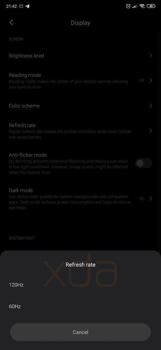 ข้อมูลนี้ถูกพบโดยสมาชิกของ XDA ใช้ชื่อว่า kackskrz ที่สังเกตเห็น Code การตั้งค่า Refresh Rate หน้าจอในซอฟต์แวร์ MIUI 11 ตัว Beta เวอร์ชั่นทดลอง พร้อมคำขยายความที่เขียนไว้ว่าช่วยทำให้หน้าจอลื่นขึ้น ส่วนการตั้งให้น้อยก็จะช่วยประหยัดแบตเตอรี่