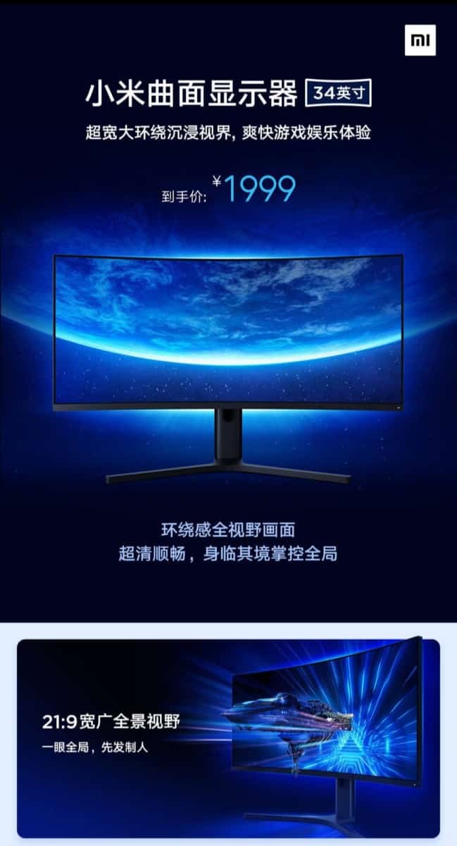Xiaomi เปิดตัวหน้าจอมอนิเตอร์เกมมิ่งตัวใหม่เป็นครั้งแรก มาด้วยกัน 2 รุ่น ตัวแรกเป็น Mi Surface Display ขนาด 34 นิ้ว และอีกตัวเป็น Mi Display ขนาด 23.8 นิ้ว ในประเทศจีน