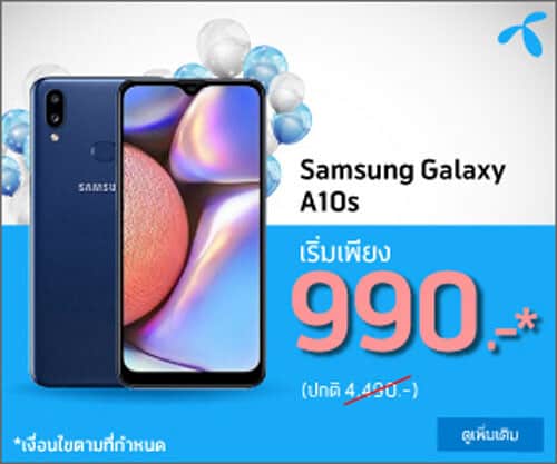 โปรโมชั่น Samsung Galaxy A10s จาก 3 โอเปอเรเตอร์ ทั้ง AIS dtac TrueMove H ในราคาเบาๆ สุดคุ้ม เริ่มต้นเพียงแค่ 990 บาทเท่านั้น จากปกติ 4,490 บาท