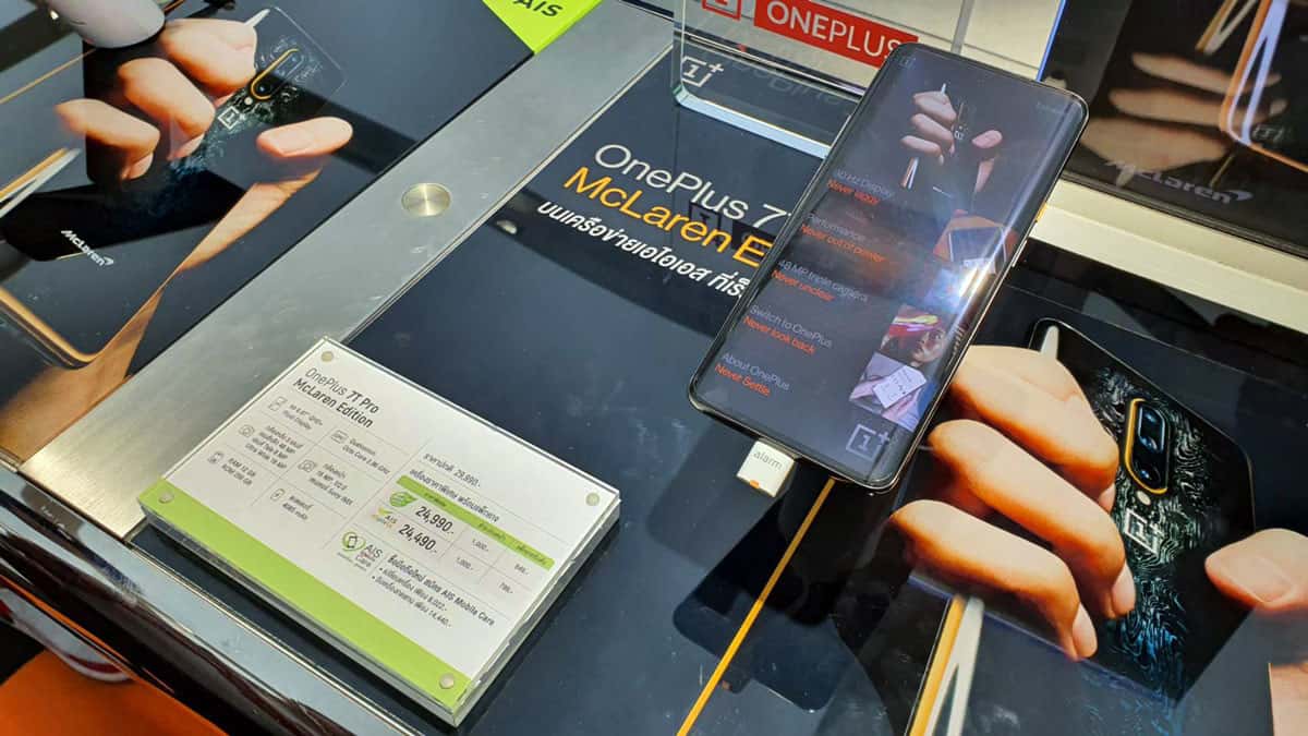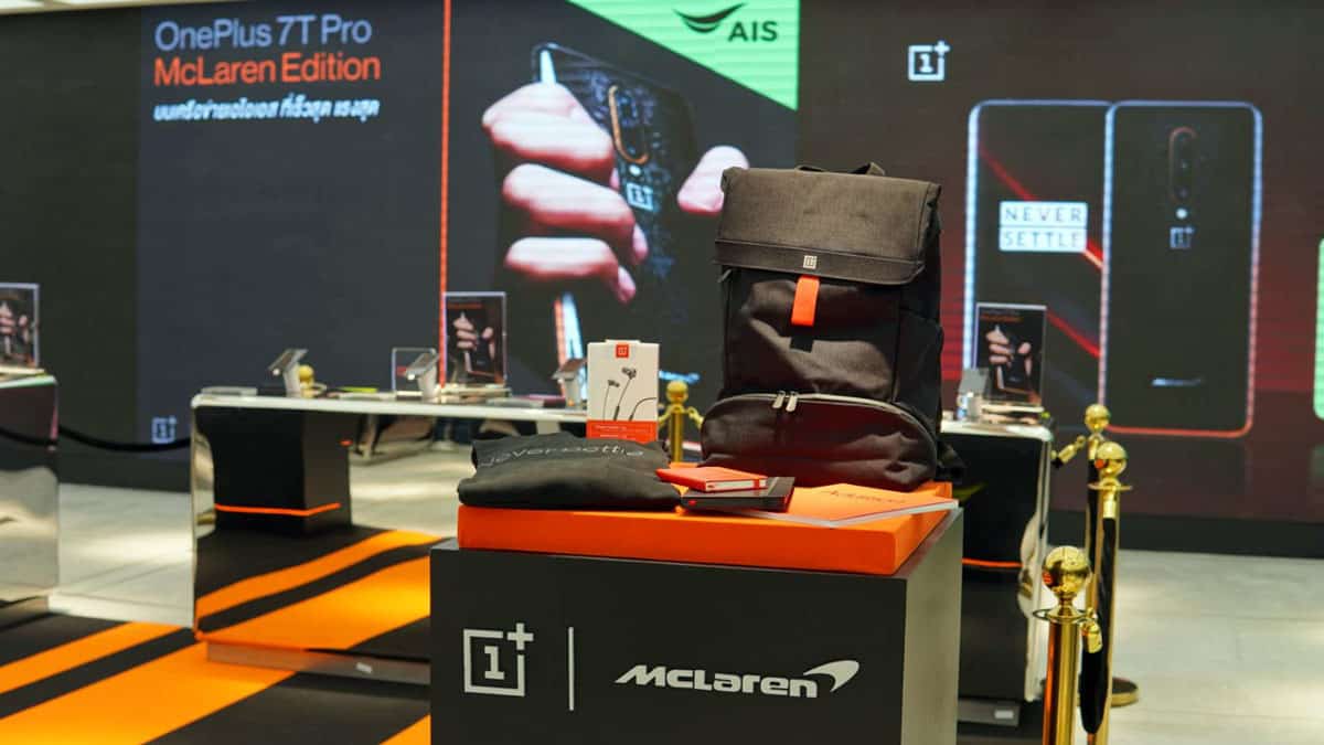 OnePlus จับมือ AIS ร่วมจัดงาน OnePlus Pop-up Event ที่ AIS Flagship Store สาขาเซ็นทรัลเวิร์ล เพื่อเปิดตัวการจำหน่ายสมาร์ทโฟนรุ่นแฟลกชิปล่าสุดจาก OnePlus รุ่น 7T Pro McLaren ซึ่งเป็นรุ่นลิมิเต็ดเอดิชั่นล่าสุดอย่างเป็นทางการ และเปิดโอกาสให้แฟน OnePlus และลูกค้าเอไอเอสได้เป็นเจ้าของ OnePlus 7T Pro McLaren Limited Edition แบบเอ็กซ์คลูซีฟ 50 คนแรกของไทย โดยนอกจากจะได้เป็นเจ้าของสมาร์ทโฟนรุ่นลิมิเต็ดเอดิชั่นที่ได้รับแรงบันดาลใจในการดีไซน์มาจากการตกแต่งภายในของรถ McLaren แล้ว OnePlusยังได้จัดเตรียม Premium Gift Set สุดพิเศษเพื่อมอบให้ลูกค้า 50 ท่านแรกนี้ อาทิเช่น บัตร VIP Card ประกันจอแตกฟรี 1 ครั้งนาน1 ปี, หูฟัง OnePlus Bullet Wireless 2, และอื่นๆ รวมมูลค่ากว่า 20,000 บาท