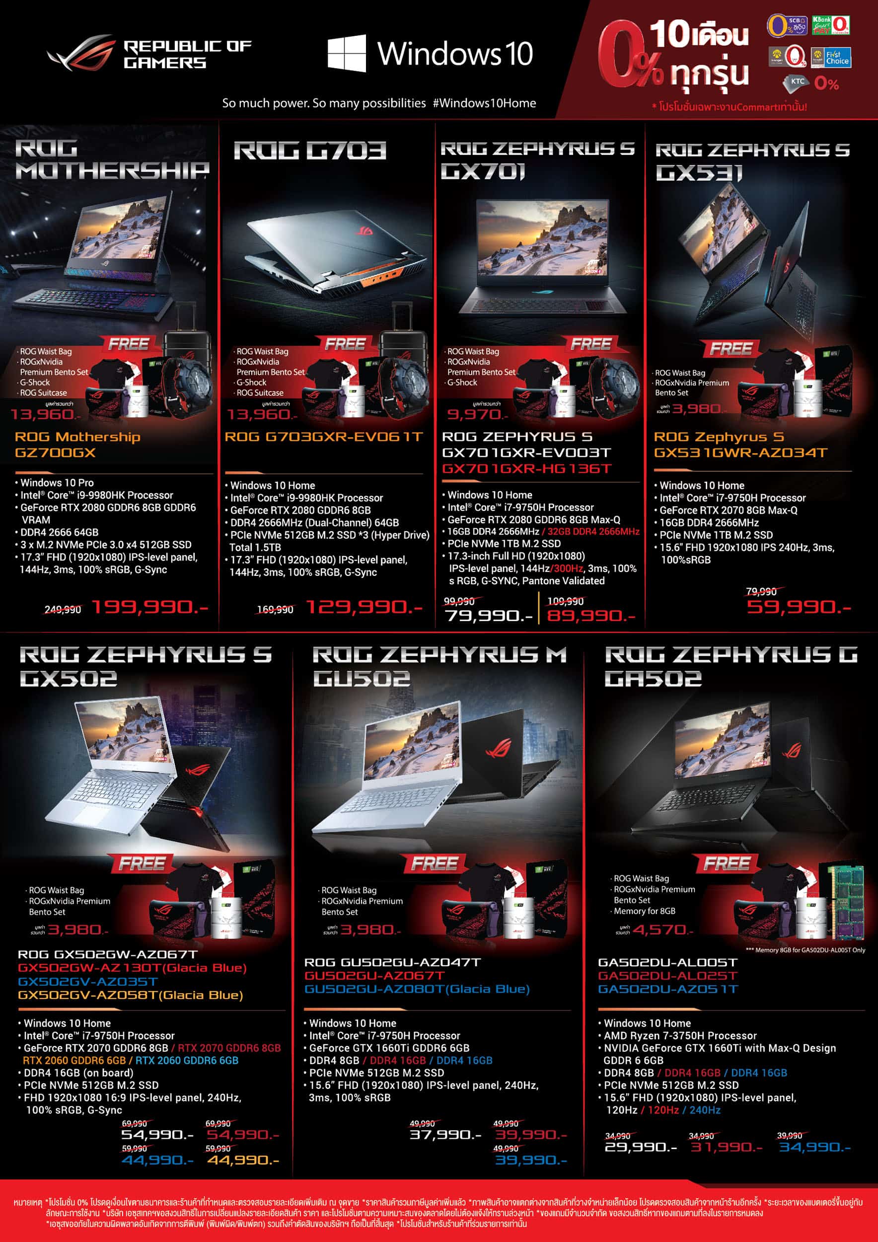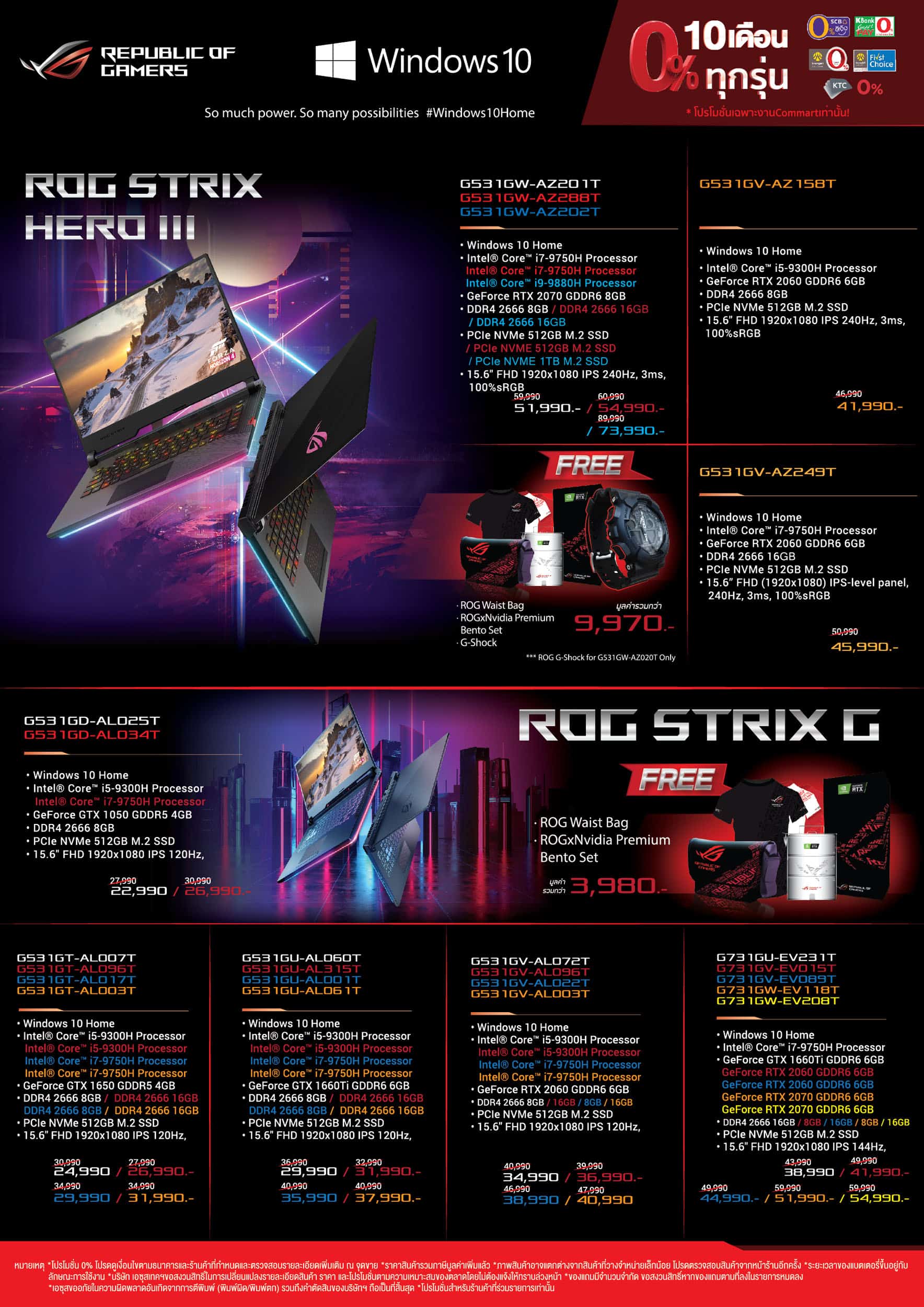 - ซื้อโน้ตบุ๊ก ROG Hero III G531 (CPU Intel i9), Zephyrus S (GX701) ฟรี ROG Waist Bag , ROG G-Shock V2, ROG x Nvidia Premium Bento Set รวมมูลค่า 9,570 บาท*