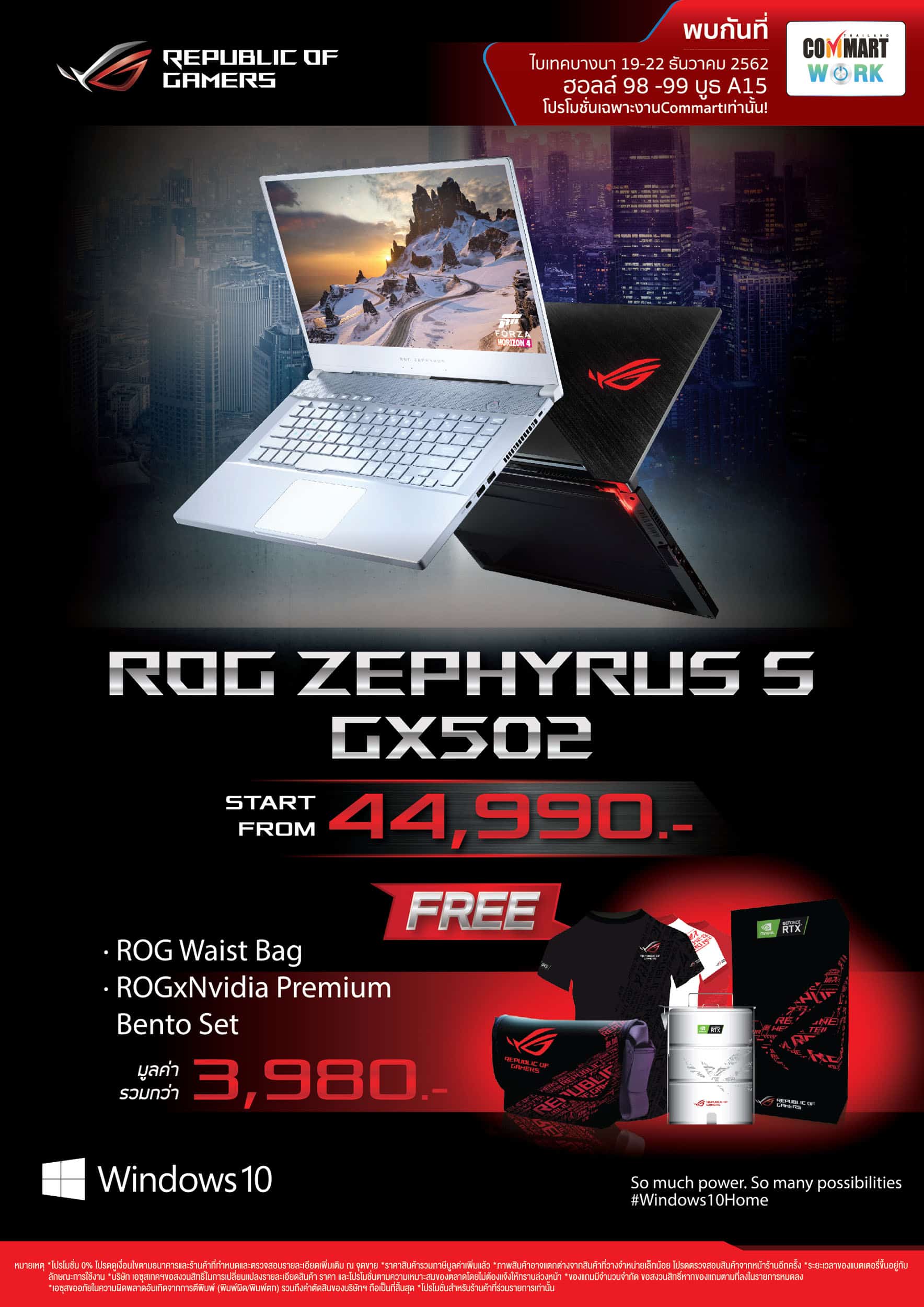 ฟรี ROG Waist Bag และ ROG x Nvidia Premium Bento Set รวมมูลค่า 3,980 บาท* - ซื้อโน้ตบุ๊ก ROG Zephyrus G (GA502DU) ฟรี AMD Backpack มูลค่า 1,590 บาท*
