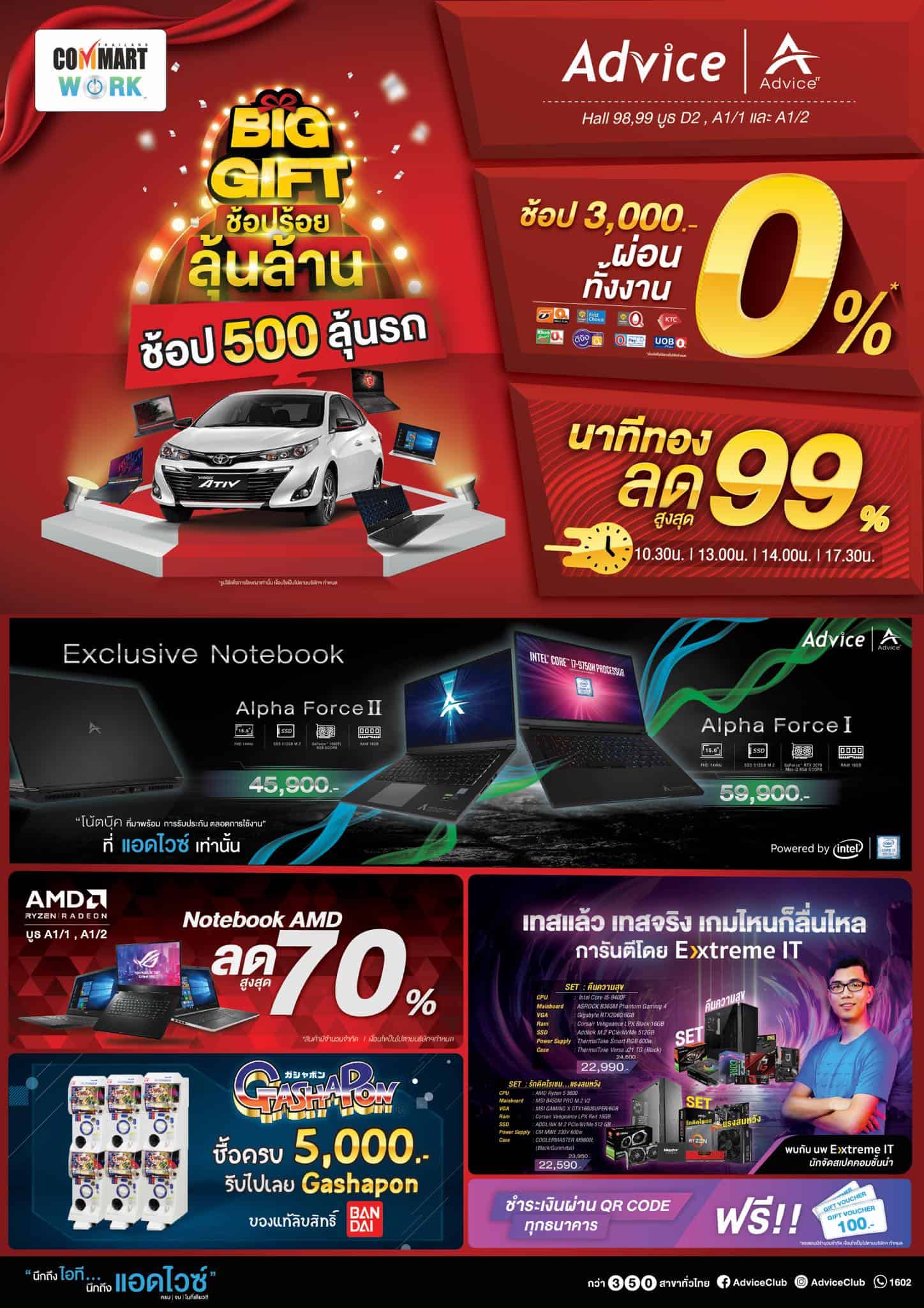 เริ่มแล้วกับงาน Commart Work 2019 ที่ ไบเทค บางนา แนะนำ โปรโมชั่น Advice กับสินค้าไอที คอมพิวเตอร์ ฯลฯ ราคาพิเศษ 19-22 ธันวาคมนี้