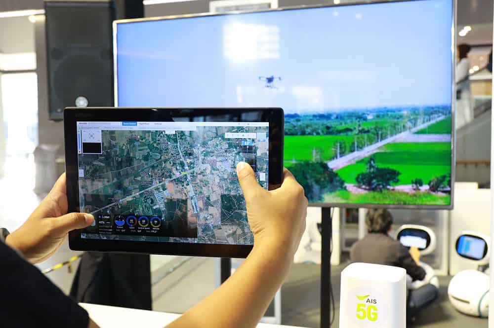 สาธิตการบังคับโดรนระยะไกล ระหว่างกรุงเทพฯ และเมืองโคราช จ.นครราชสีมา ในพื้นที่ที่ได้รับอนุญาตผ่านเครือข่าย 5G บน Live Network แสดงแนวคิดการใช้งานโดรนในยุค 5G ที่ความเร็วสูงและความหน่วงต่ำ ซึ่งคนควบคุมไม่จำเป็นต้องอยู่ที่เดียวกับโดรน แต่สามารถควบคุมโดรนระยะทางไกลได้ผ่านเครือข่ายมือถือ และสามารถ Streaming Video ที่มีความละเอียดสูงกลับมาหาผู้ใช้งานได้ทันที ซึ่งสามารถนำไปประยุกต์การใช้งานได้หลากหลาย ทั้งด้านการขนส่งและโลจิสติกส์, การเกษตร, ความปลอดภัยสาธารณะ, การกู้ภัย รวมถึงการนำไปใช้ควบคุมโดรนภายในเมืองอัจฉริยะ เพื่อใช้ในการเข้าไปสำรวจพื้นที่ต่างๆ