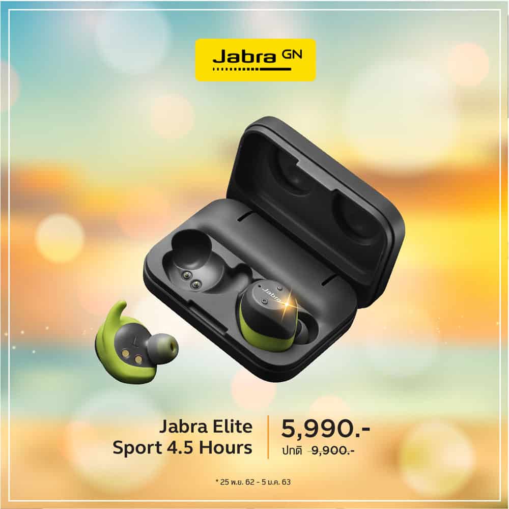 - พิเศษสุด!! รับส่วนลดทันที 4,000 บาท เมื่อซื้อ Jabra Elite Sport 4.5 สุดยอดหูฟังไร้สายอัจฉริยะ ที่มาพร้อมเซ็นเซอร์การวัดหัวใจ และการเคลื่อนไหว นอกจากนั้น ยังมาพร้อมเสียงโค้ชจาก Application Jabra Sport Life ที่จะทำให้ทุกคนสามารถออกกำลังกายได้ดียิ่งขึ้น จากราคา 9,900 บาท เหลือเพียง 5,990 บาท