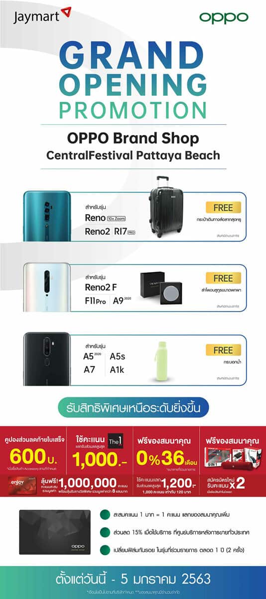 29 พฤจิกายน 2562 ที่ผ่านมา OPPO จับมือกับ JayMart เปิดตัว OPPO Brand Shop สาขาแห่งที่ 200 ในประเทศไทยอย่างเป็นทางการ ณ ศูนย์การค้าเซ็นทรัลเฟสติวัล พัทยา บีช ชั้น 3 เพื่อเป็นการรองรับการให้บริการแก่ผู้ใช้งาน โดยในการเปิดตัวครั้งนี้นำโดย คุณ Li Gengwu Brand Shop Director ออปโป้ ไทยแลนด์และ คุณอัครวัฒน์ วารินทร์ Assistant Vice President บริษัท เจมาร์ท โมบาย จำกัด