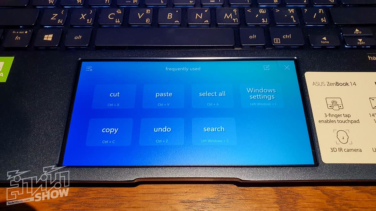 คราวนี้จะมาเล่าส่วนของเจ้า ScreenPad 2.0 กันบ้าง ถือว่าเป็นนวัตกรรมที่ไม่เหมือนใคร แล้ว Asus ก็เป็นรายแรกที่คิดค้นขึ้นมา ในรุ่นนี้ที่เป็นเวอร์ชั่น 2 ก็มีการพัฒนาให้การทำงานดีขึ้นกว่าเดิม ที่เรียนรู้การใช้งานได้ไม่ยาก จะบอกกว่าการออกแบบใช้งานให้ความรู้สึกได้อารมณ์คล้ายๆ บนสมาร์ทโฟนเลยล่ะ ทั้งหน้าตาอินเทอร์เฟส และการสั่งงาน การใช้งาน เราเลือกได้ว่าจะเปิดใช้งานแบบไหน โดยจะเลือกเปิดเป็น ScreenPad หรือจะปิดจอแล้วใช้เป็นแทร็คแพ้ดตามปกติก็ได้ อันนี้ก็ช่วยประหยัดพลังงานได้อีก