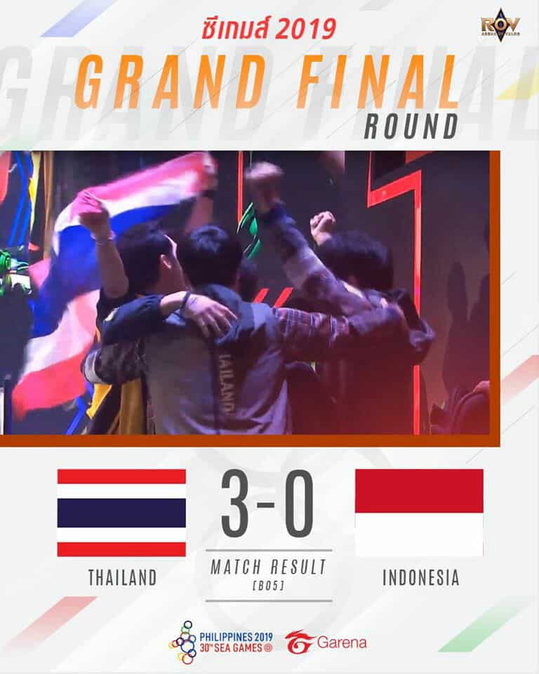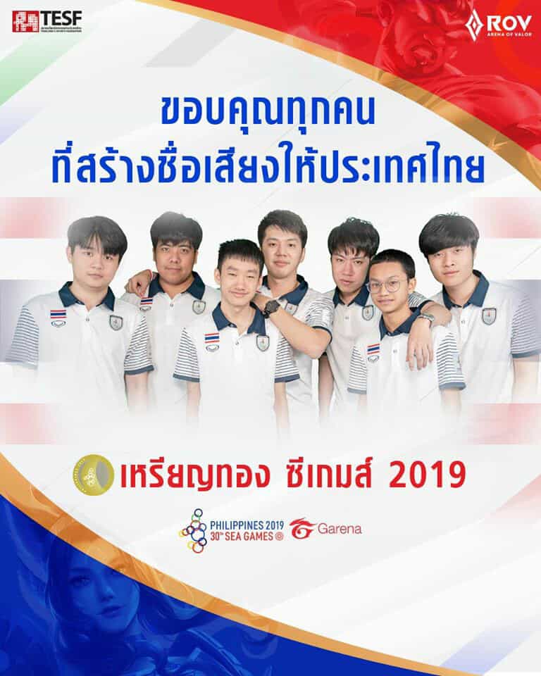 ทีมชาติไทยคว้าเหรียญทอง จากเกม Arenaof Valor (RoV) ในศึกซีเกมส์ 2019 คว้าอีกหนึ่งเหรียญทองมาให้ประเทศไทยจากมหกรรมการแข่งขันกีฬาระดับนานาชาติ