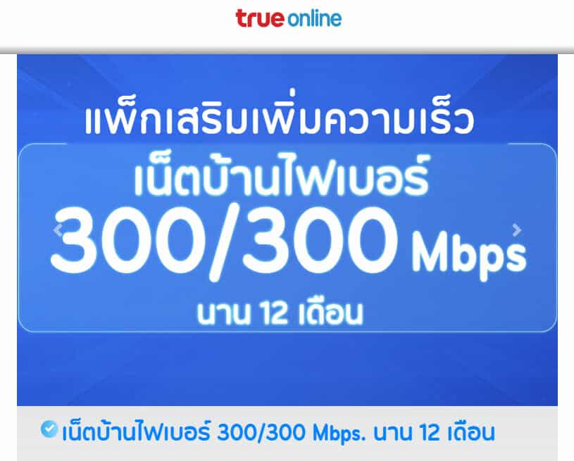 และพิเศษเพิ่มขึ้น ลูกค้าปัจจุบันสามรถเพิ่มความเร็วอินเทอร์เนตไฟเบอร์ขึ้นไปอีกขั้น เป็น 300/300 Mbps นาน 12 เดือน โดยไม่มีค่าใช้จ่ายเพิ่ม เพียงแค่เข้าไปกดรับสิทธิที่ www.truefiberupyourlife.com รับสิทธิได้ตั้งแต่ 5 ธันวาคม 2562 ถึง 31 มกราคม 2563 นี้