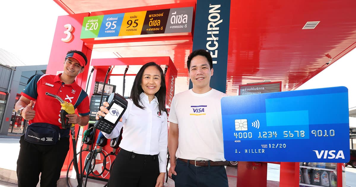 ถือเป็นครั้งแรกของประเทศไทย ที่ผู้ใช้บริการใน ปั๊ม Caltex สามารถชำระเงินผ่านการ “แตะ เพื่อจ่าย” ของบัตร VISA โดยไม่ต้องยื่นบัตรชำระเงินของตนเองให้พนักงานปั๊มในกว่า 370 สาขาทั่วประเทศ