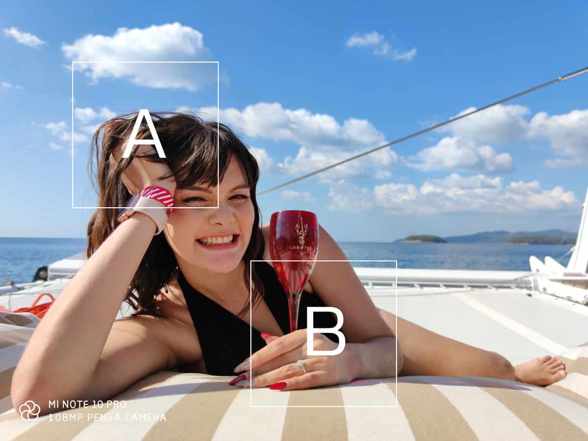 ถ่ายภาพในสภาพแสงจ้ามากๆ หรือย้อนแสง ก็ไม่ใช่ปัญหา อย่างซีนที่ถ่ายบนเรือยอร์ชกลางทะเล เราสามารถเล่นกับแสงได้อย่างสนุก โดยไม่ต้องกลัวว่านางแบบจะหน้ามืดหรือมองเห็นไม่ชัด ระบบช่วยปรับเฉลี่ยความสว่างของภาพให้เรียบร้อย หรืออยากจะถ่ายแบบ silhouette เน้นเป็นเงาดำเล่นกับแสงและภาพของฉากหลัง ก็ทำได้สวยงามเทียบเท่ากับใช้กล้องโปรถ่ายได้เลย