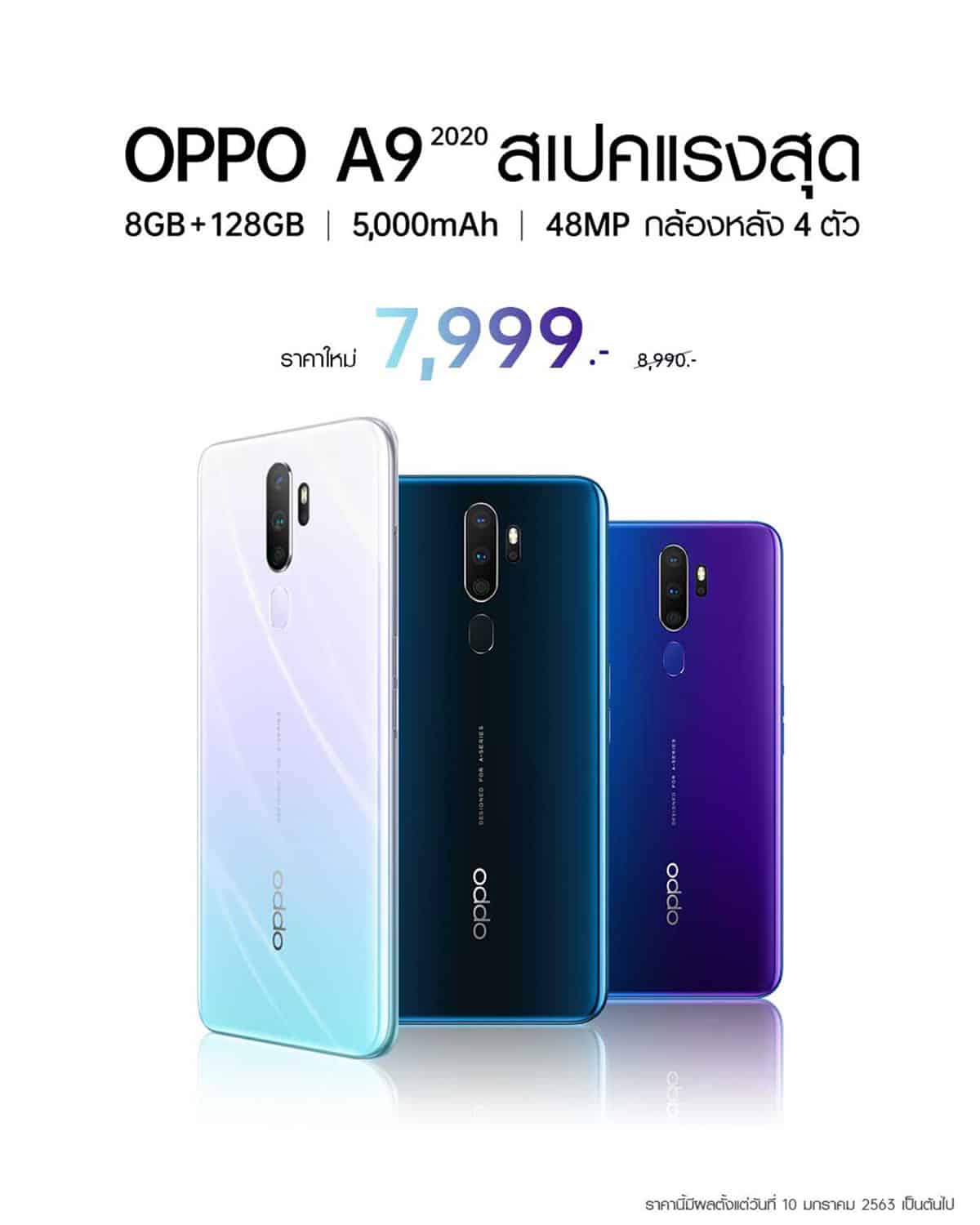OPPO A9 2020 ราคา เดิม 8,990 บาท เหลือเพียง 7,999 บาท