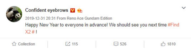 Brian Shen ตำแหน่งรองประธาน และ ประธานฝ่ายการตลาดทั่วโลก ของ OPPO ได้ทำการสวัสดีปีใหม่ผ่าน Weibo พร้อมกับข้อความ ที่แง้มๆว่า ประมาณว่า